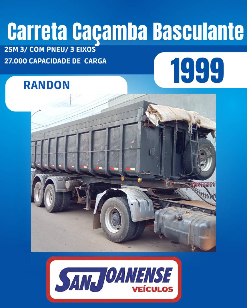 Carreta RANDON Caçamba Basculante 3 Eixos - 1999 - BRANCO - 25M 3 - COM PNEU - 27.000 CAPACIDADE DE CARGA MUITO NOVO / FAZEMOS FINANCIAMENTO.